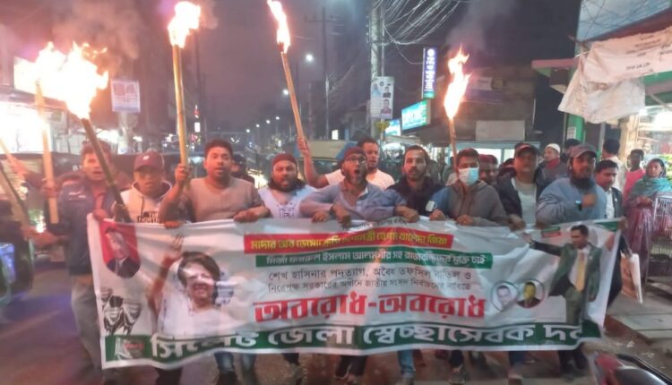 ১২ ও ১৩ ডিসেম্বরের অবরোধ সফল করতে আজ সন্ধ্যা রাতে সিলেট – তামাবিল মহাসড়কের শিবগঞ্জে মশাল মিছিল ও বিক্ষোভ সমাবেশ করে সিলেট জেলা স্বেচ্ছাসেবক দল।